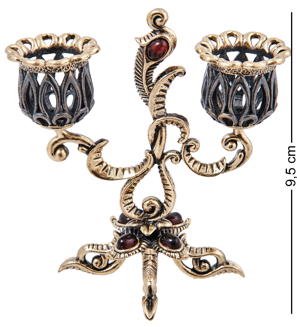 AM-4004 Подсвечник «Канделябр Цветение» (латунь, янтарь)