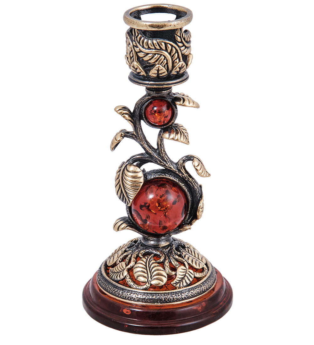 AM-4016 Подсвечник «Лоза» (латунь, янтарь)