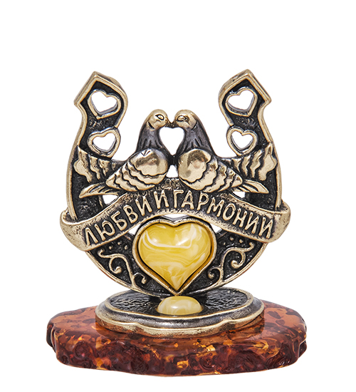 AM-4091 Фигурка «Подкова Голубки» (латунь, янтарь)
