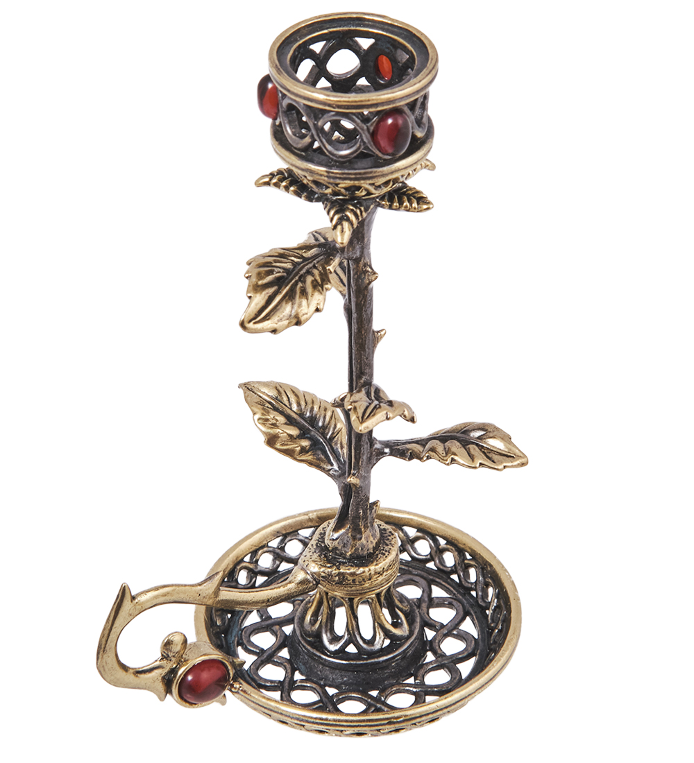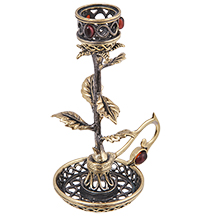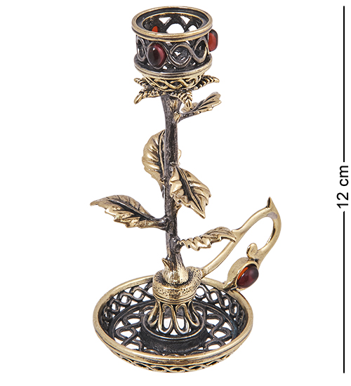 AM-4133 Подсвечник «Роза Чайная» (латунь, янтарь)