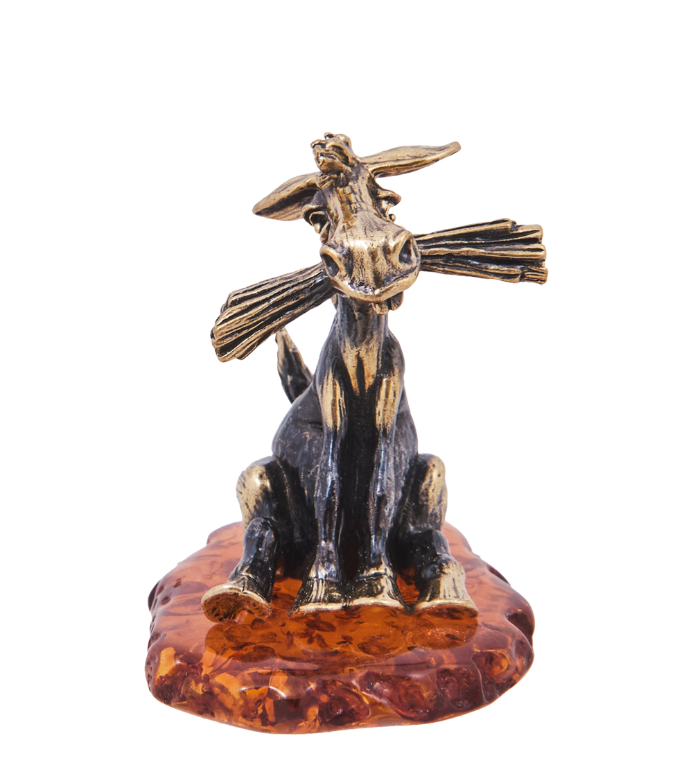 AM-4161 Фигурка «Лошадь Ланч» (латунь, янтарь)
