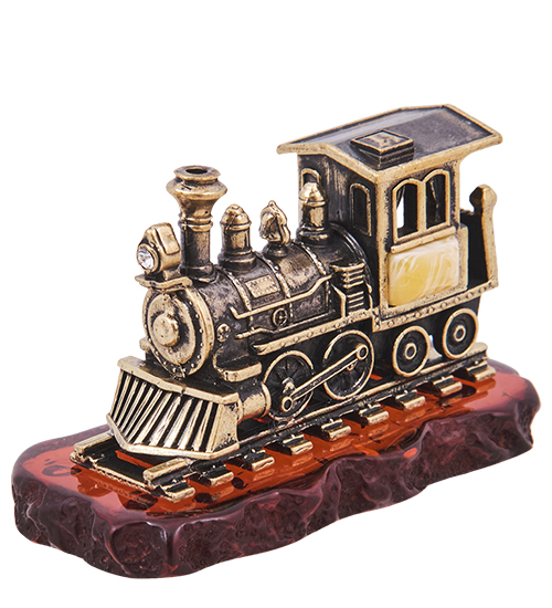 AM-4162 Фигурка «Паровоз Железная дорога» (латунь, янтарь)