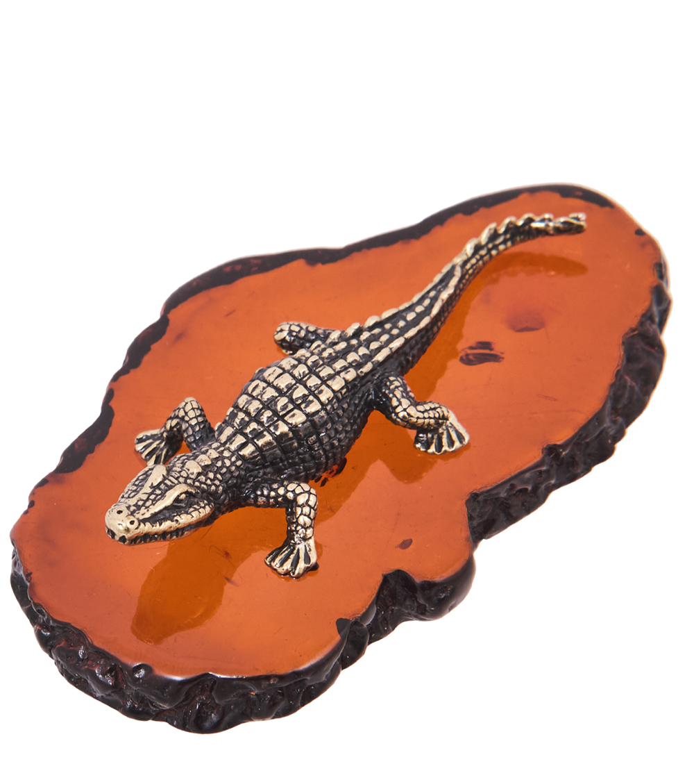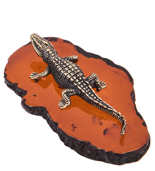 AM-4183 Фигурка «Крокодил Кайман» (латунь, янтарь)