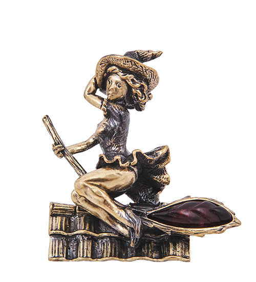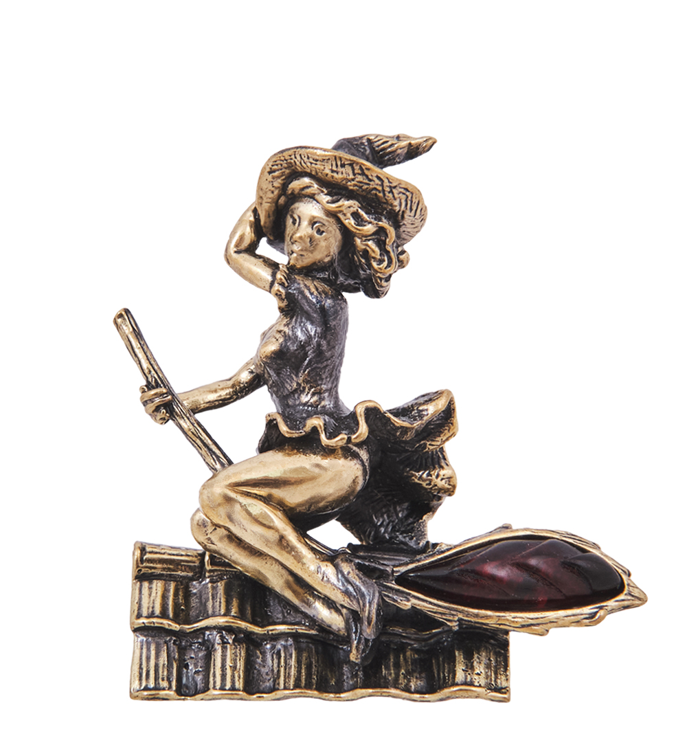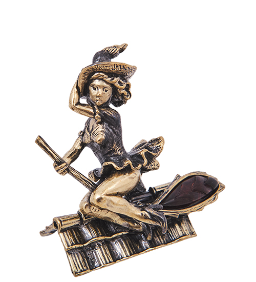 AM-4201 Фигурка «Ведьмочка на крыше» (латунь, янтарь)