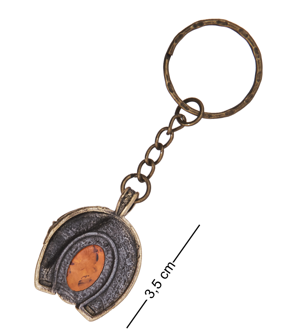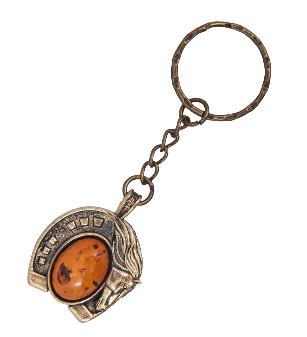 AM-4228 Брелок «Лошадка Подковка» (латунь, янтарь)