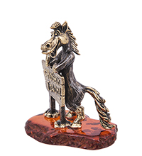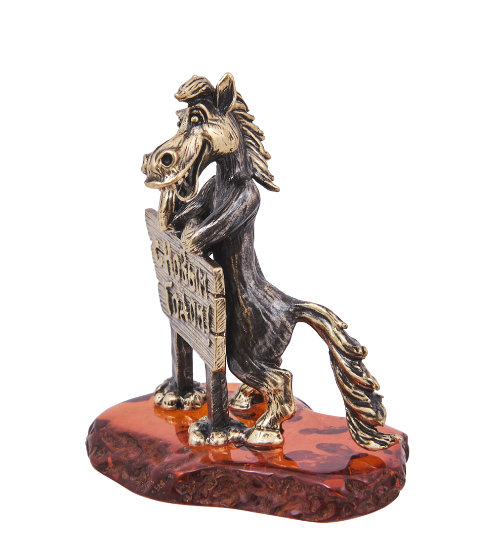 AM-4231 Фигурка «Лошадь С Новым Годом!» (латунь, янтарь)