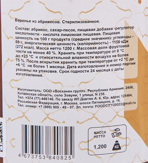 ARM-28/12 Варенье из Абрикоса 1,2кг (ARMFOOD)