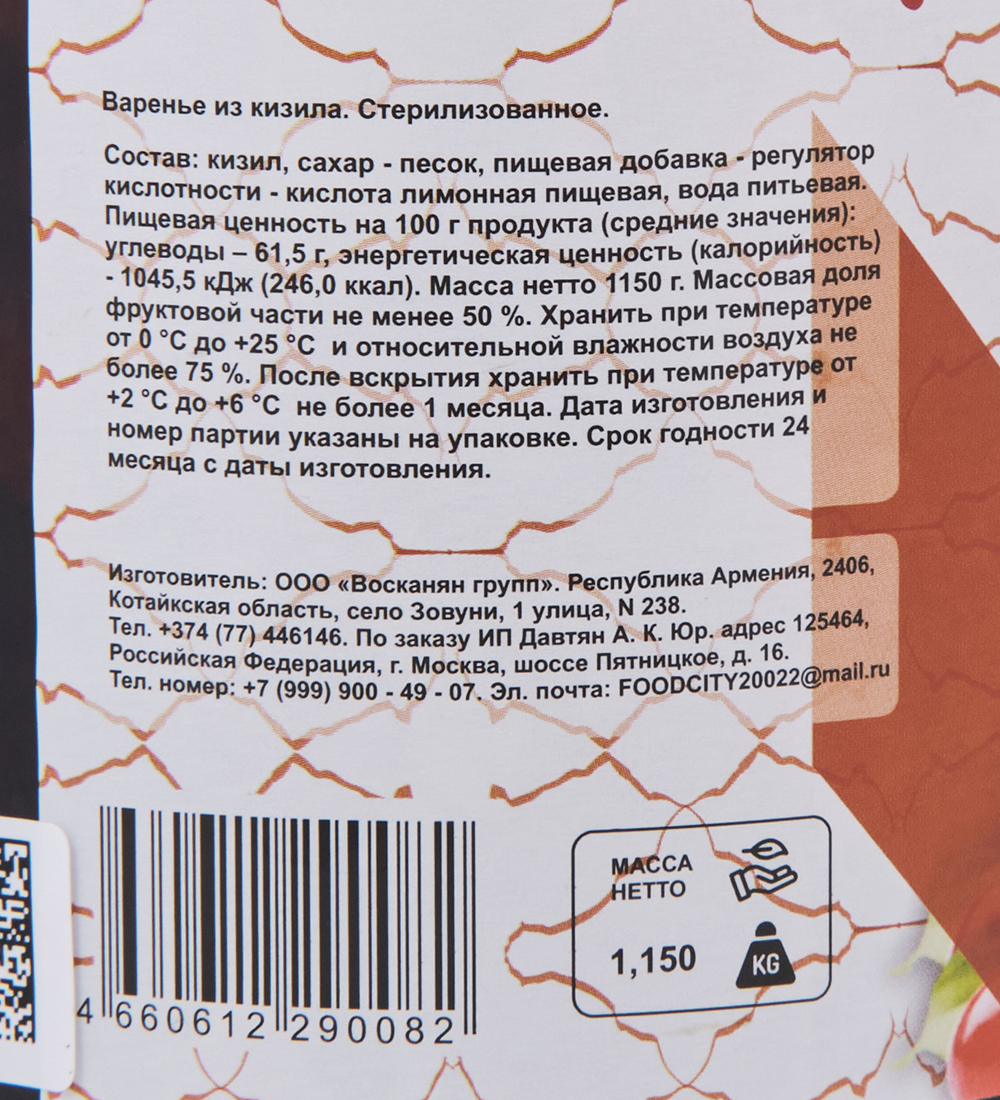 ARM-28/16 Варенье из Кизила 1,0кг (ARMFOOD)