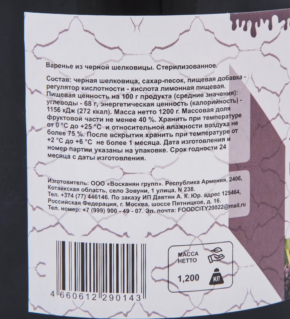 ARM-28/17 Варенье из Шелковицы черной 1,2кг (ARMFOOD)