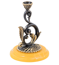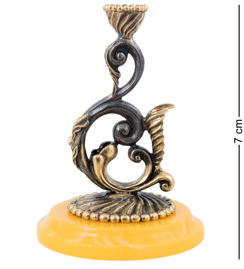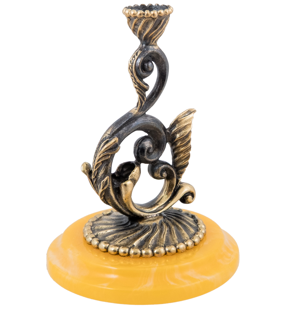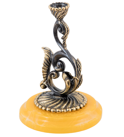 AM-1584/1 Подсвечник «Ажурный» (латунь, янтарь)
