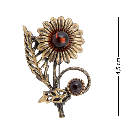 AM-4268 Брошь «Цветок Лепесток» (латунь, янтарь)