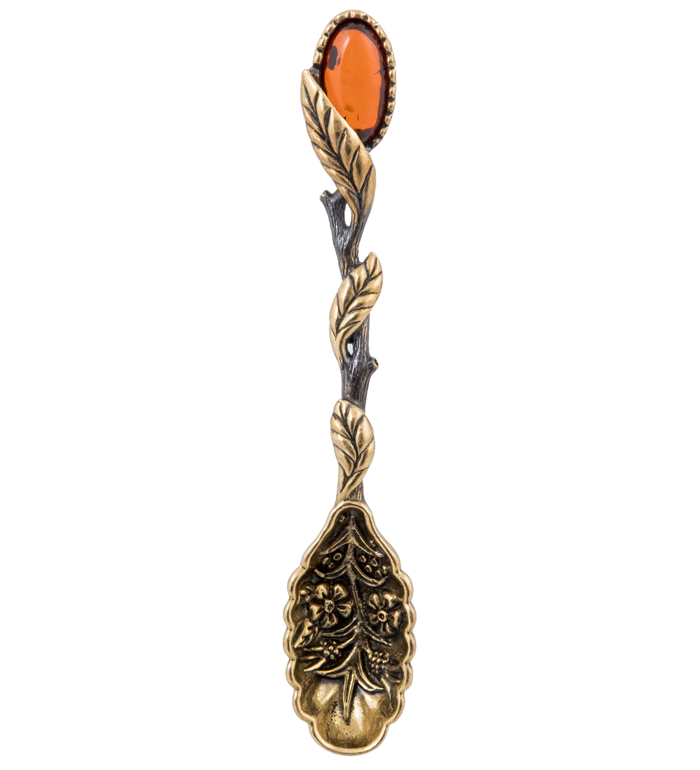 AM-4270 Ложка «Веточка» (латунь, янтарь)