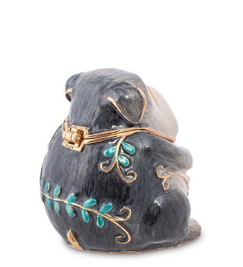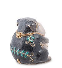 Голова собачки откидывается на петле, и открывается пространство, где можно сложить небольшие драгоценности. Цепочка может поместиться, колечко, сережки-столбики. Очень уж маленькая эта шкатулочка. Зато все, что в ней хранится, всегда будет у вас под руками, если вы посадите эту собачку на свой туалетный столик.