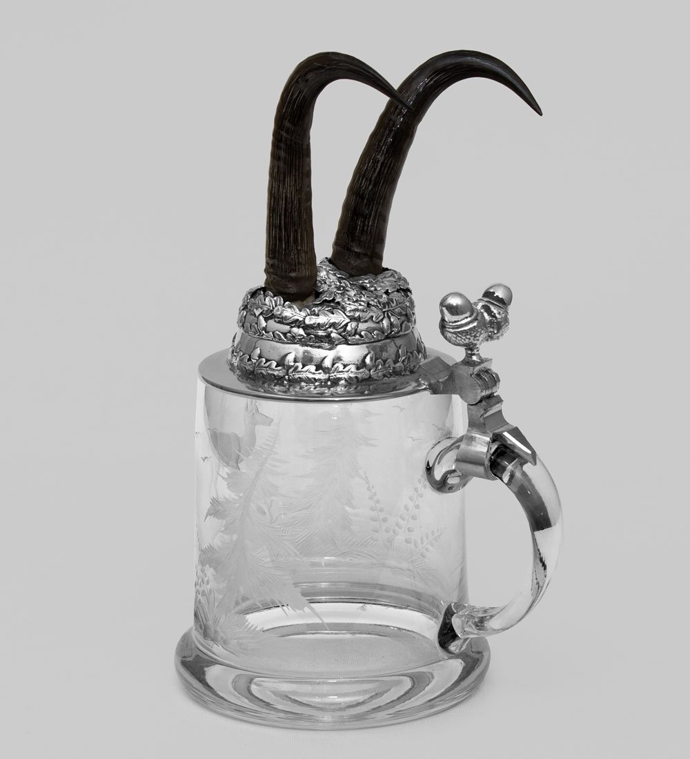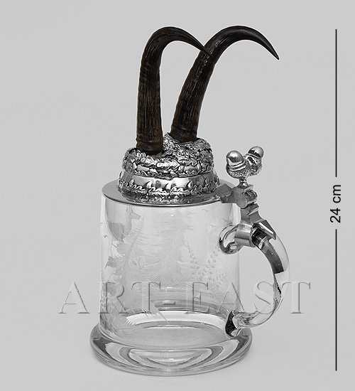 W-516-2G Пивная кружка с рожками серны с гравировкой