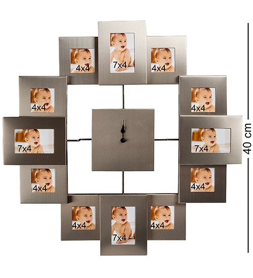 Панно из фоторамок для 12 фотографий с часами (метал мат.)