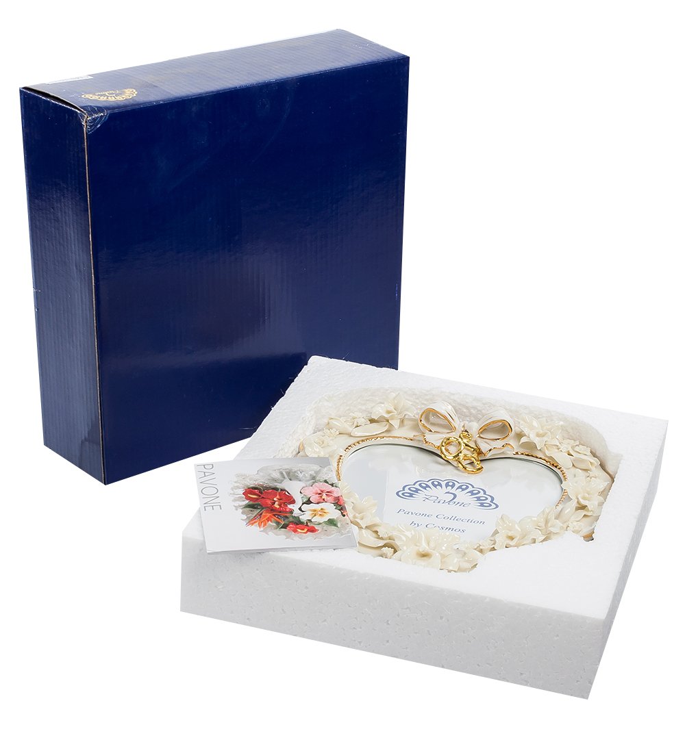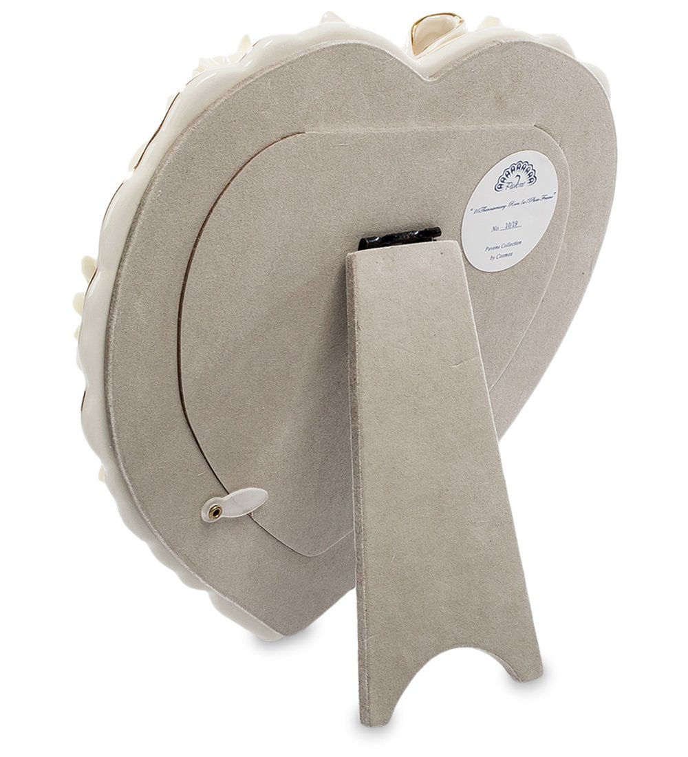 Рамка эта предназначена исключительно для свадебной фотографии. Недаром она имеет форму сердечка и вся усыпана цветами и листьями. Увенчивает рамку красивый бантик, отображающий прочность и нежность семейных уз. Фотография в этой рамочке должна стоять много лет, которые предстоит дружно прожить сегодняшним молодоженам.
