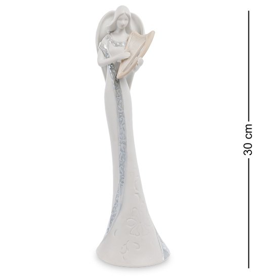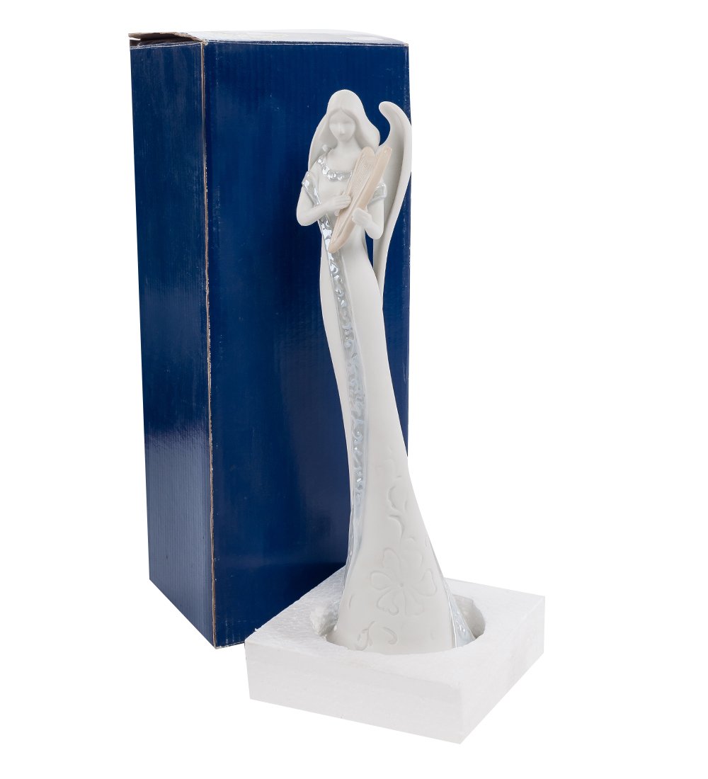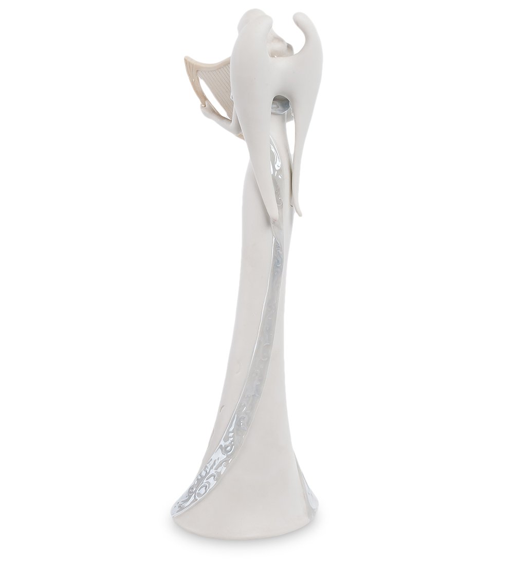 Таких длинных женских фигур не бывает, но это ведь ангел, вот и крылья у этой девушки за спиной поднимают ее вверх над землей, и только длинная одежда ниспадает до самой земли, создавая опору для статуэтки. Ангел-хранитель должен защищать человека и его семью от всевозможных неприятностей. Иногда средством защиты, барьером перед бедами становится музыка. Вот девушка-ангел достала свою волшебную лиру, и звуки небесной красоты полились, заставляя все греховное отступить и забыться. Подарок этот означает желание принести мир и покой в семью, которую отныне будет охранять этот музыкальный ангел.