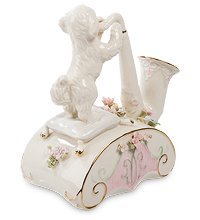 Маленький беленький щенок увлеченно дует в мундштук саксофона. И не так уж важно, умеет ли он на самом деле играть – вся эта композиция служит украшением музыкальной шкатулки, которая сама по себе может воспроизводить музыку. Слушайте любимую мелодию и представляйте себе, что щенок на саксофоне – один из участников оркестра. Основание фигурки, скрывающее музыкальную начинку, отделано по краям золотым кантом и усыпано нежными цветами. Они – тоже фарфоровые, но так похожи на живые! Музыкальная композиция станет отличным украшением спальни, особенно оформленной в нежном классическом стиле.