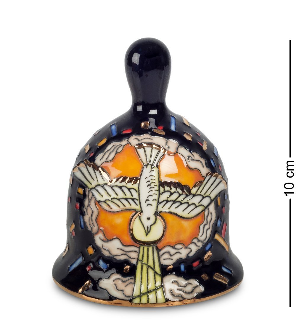 Колокол «Голубь – символ Святого Духа» - это не просто изящное интерьерное украшение, а изделие, наделенное глубоким смыслом. На фарфоровом колокольчике мастер изобразил лик белоснежной птицы, которая летает в облаках, чтобы передать божественные послания людям. Рисунок выполнен настолько талантливо и гармонично, что создается впечатление, будто бы колокол является частью шедевра живописи.
