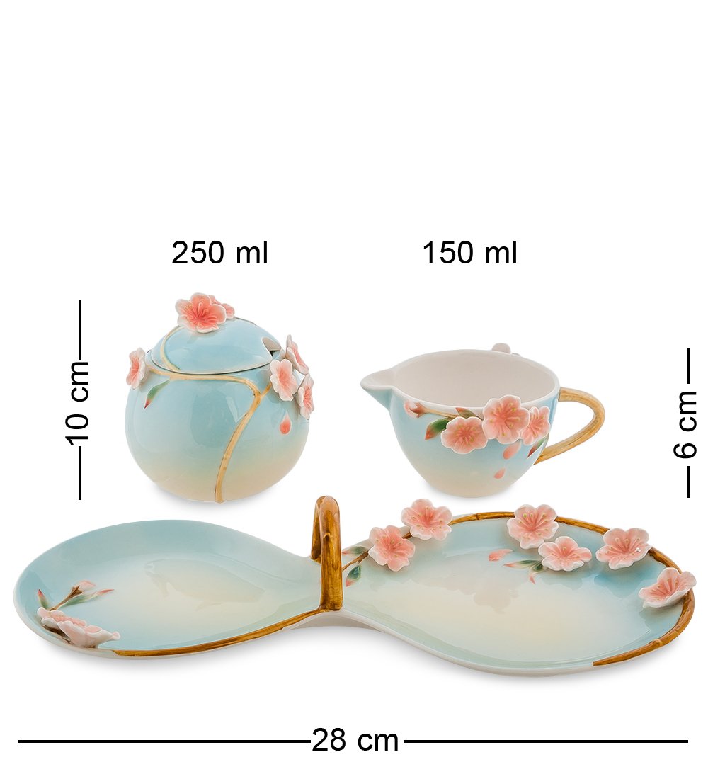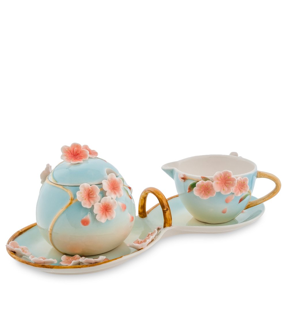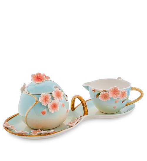 Прелестный набор ''Сакура'' составлен из двух приборов - молочника и сахарницы. Керамические изделия от бренда Pavone изготовлены во флористическом дизайне. Нежные пастельные оттенки окунут в атмосферу японского чаепития возле очаровательного дерева сакуры. Набор посуды поднимет настроение гостям и составит союз изысканности и благородства для почитателей утонченного.