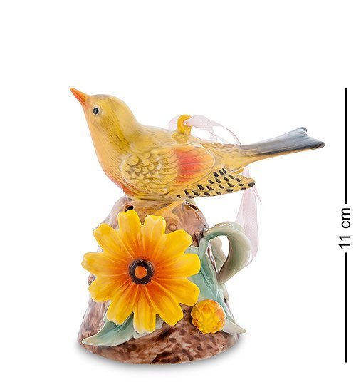 Уникальная и современная музыкальная фигурка «Малиновка» поражает ярко-желтыми оттенками в дизайне. Преобладающий солнечный цвет настолько красиво сочетается с остальными цветами, что фигура выглядит, как настоящая. Ее можно использовать в качестве статуэтки либо подвешивать за ленточку.