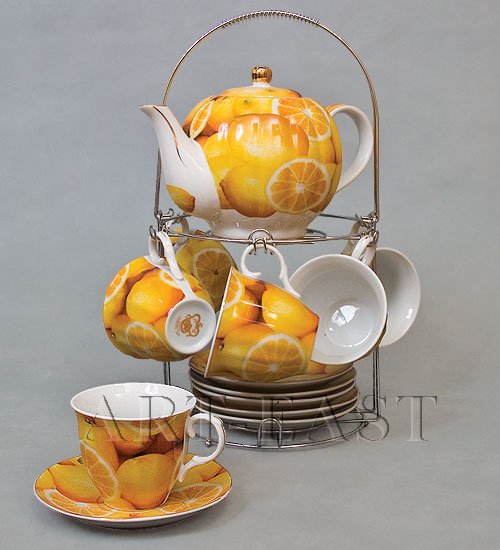 20005 Набор чайный «Лимоны» (1500/220) 13 пр. на металлическом стенде (8)