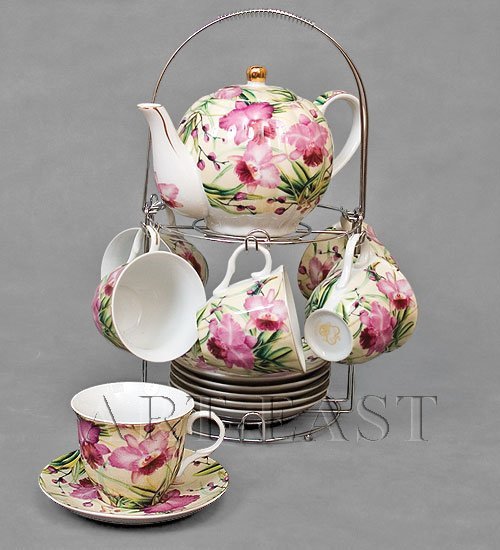20011 Набор чайный «Цветущие орхидеи» (1500/220) 13 пр. на металлическом стенде (8)