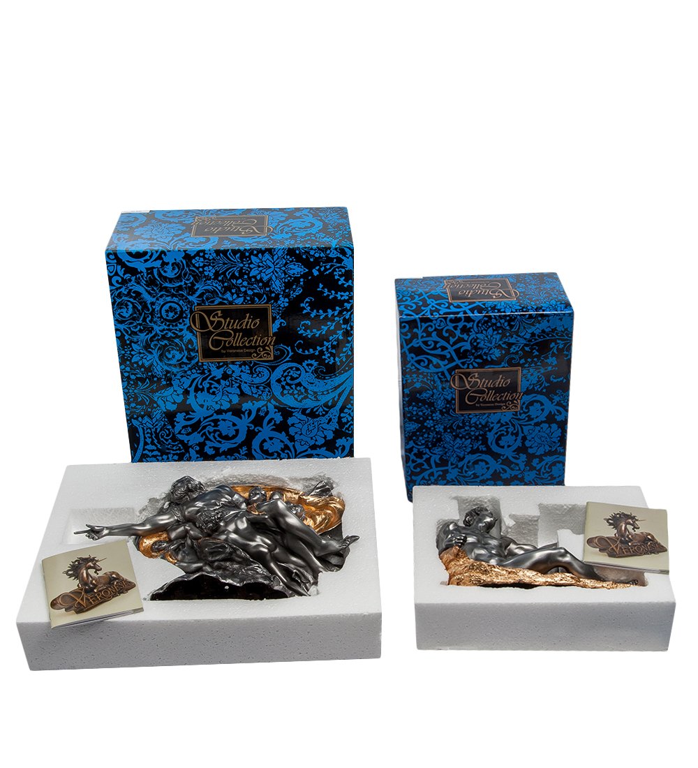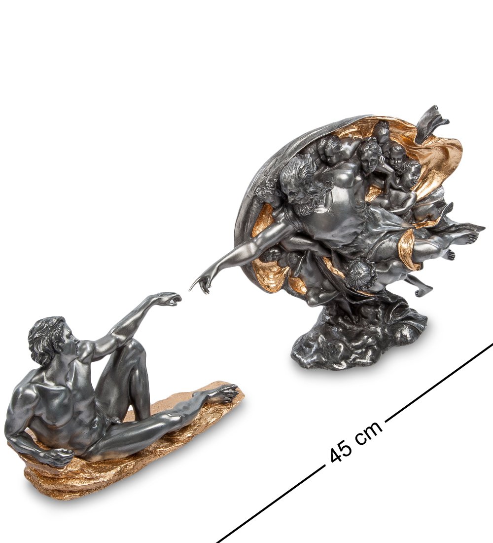 Композиция из двух статуэток «Сотворение Адама» - уменьшенная копия фрески Микеланджело, которую великий итальянский живописец создал в начале 16-го века. Левая фигурка изображает Адама, лежащего на скале: его рука протянута к Богу-Отцу, который также протянул руку к своему творению, чтобы вдохнуть в человека жизнь.