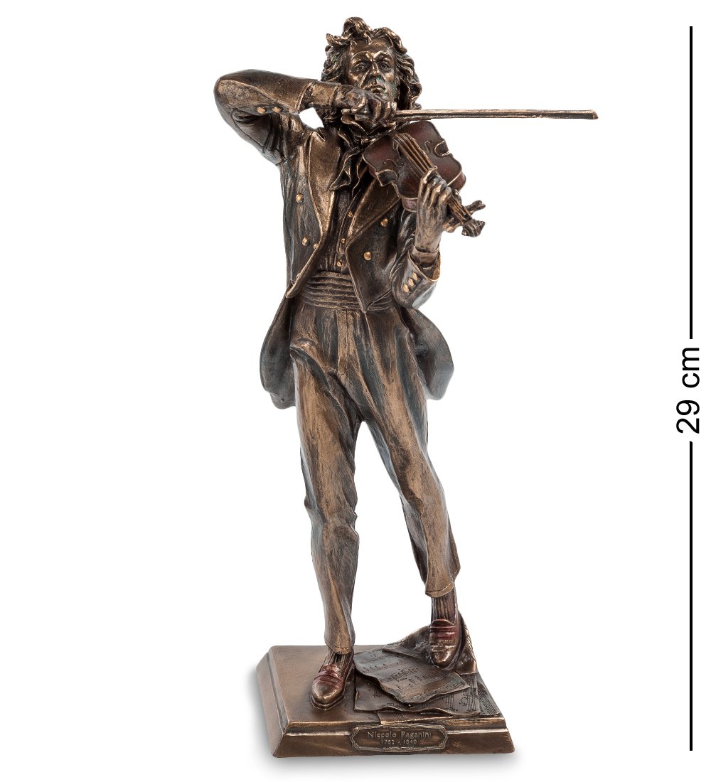 Не знаете, чем удивить ценителя классической музыки? Или хотите разнообразить свой интерьер фигуркой известной личности? Статуэтка “Паганини” из полистоуна идеально подойдет для таких случаев. Фигурка выполнена из современного полимера и окрашена профессионалами под состаренную бронзу. Композиция смотрится очень эффектно.