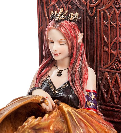 Статуэтка «Вечные друзья» в стиле фэнтези, сделанная из полистоуна, демонстрирует девушку-эльфа и небольшого оранжевого дракона. Девушка восседает на деревянном резном троне с высокой спинкой, а дракон мирно отдыхает на ее руках, обвив хвостом левую ногу девушки. Они дружат тысячи лет, и вряд ли когда-то расстанутся.
