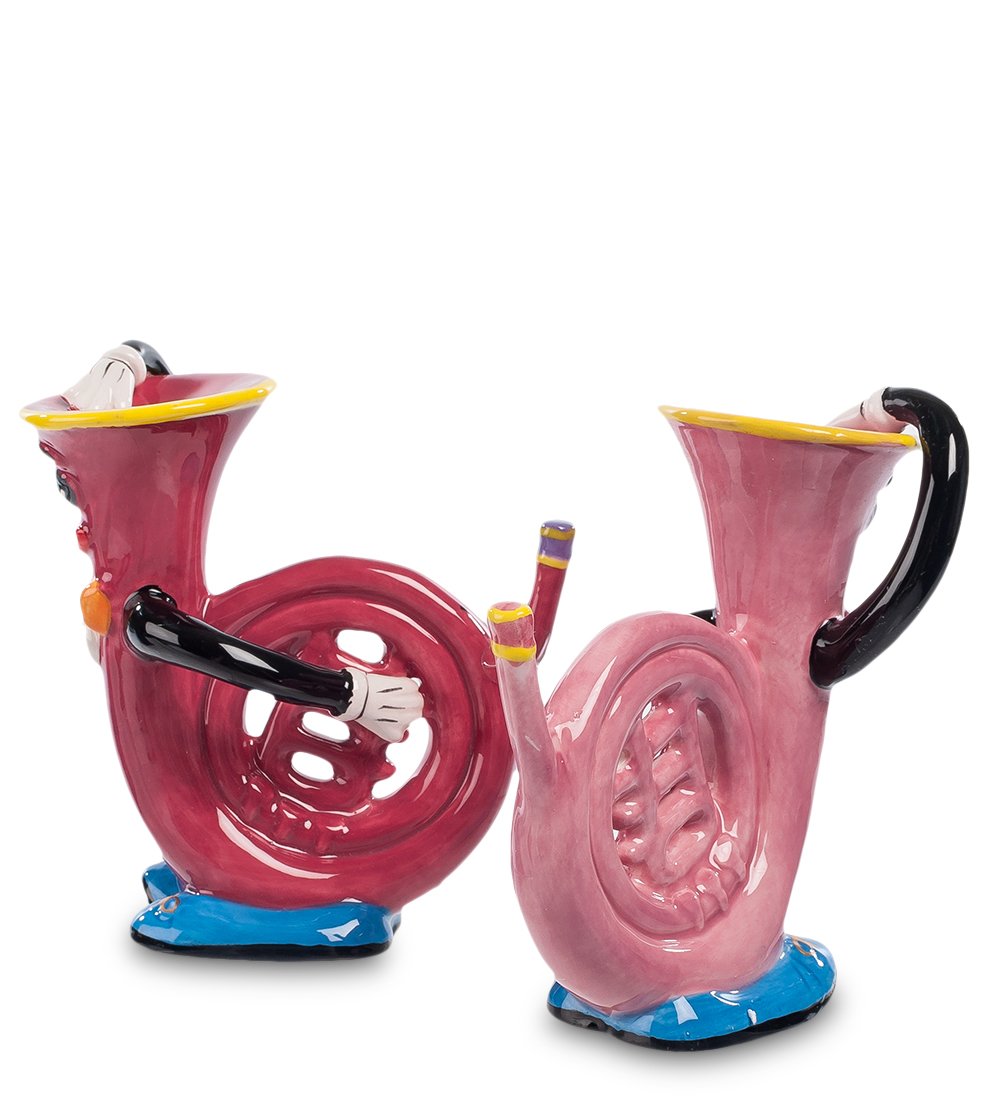 На валторне играют своеобразно – прикрывая раструб духового инструмента рукой, извлекают своеобразные звуки. Эти две забавные ожившие валторны постарались обойтись без музыкантов – они сами перебирают клапаны и закрывают раструб, для чего даже руки отрастили. Ноги тоже есть – они позволяют уверенно стоять на столе.